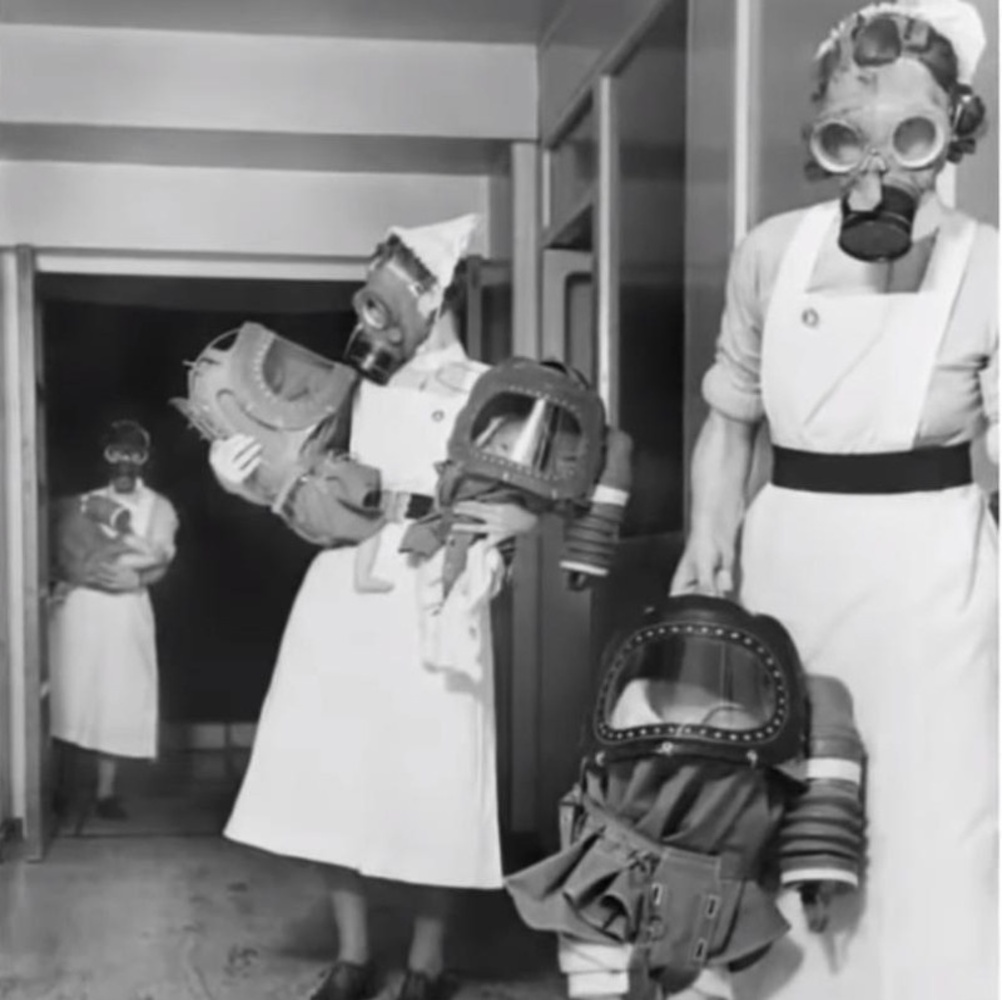 Test masek gazowych dla niemowlaków prowadzony w jednym z londyńskich szpitali w 1940 roku.