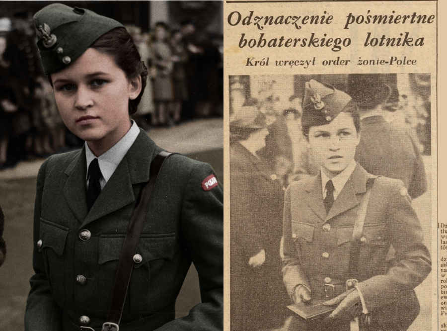 Zdjęcie: Maria Barr - zdjęcie koloryzowane przez Mateusza Pietruszkiewicza plus Ilustracja z Dziennika Polskiego nr 896 z 11 czerwca 1943 roku